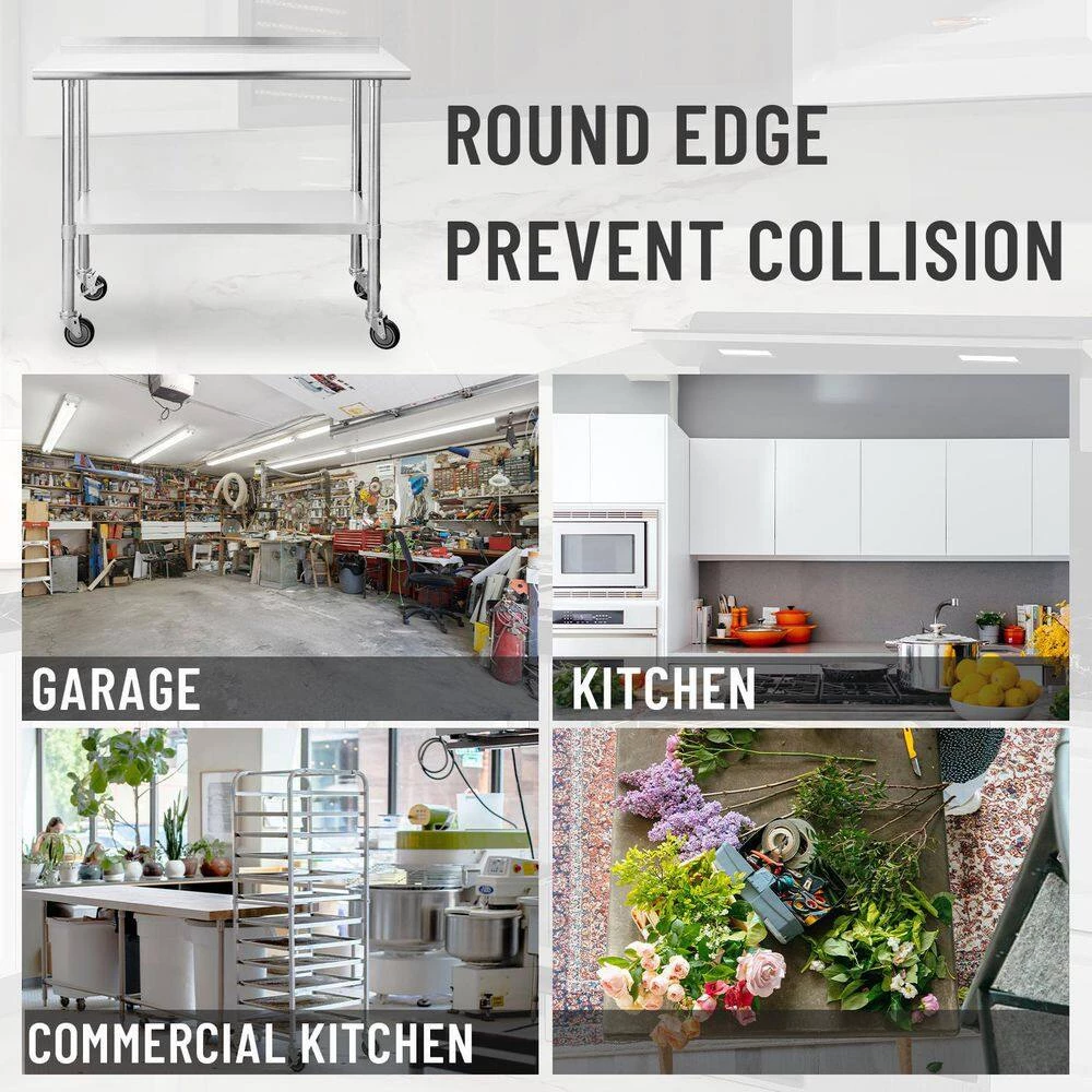 The workstation made of high-quality stainless steel provides you with stable, firm and durable support. Our workstation can be used in a wide range of scenarios, ideal for commercial, home, and office environments. You can use it in the kitchen, restaurant, cafeteria, outdoor BBQ, laundry room, shop, garage, factory, etc.