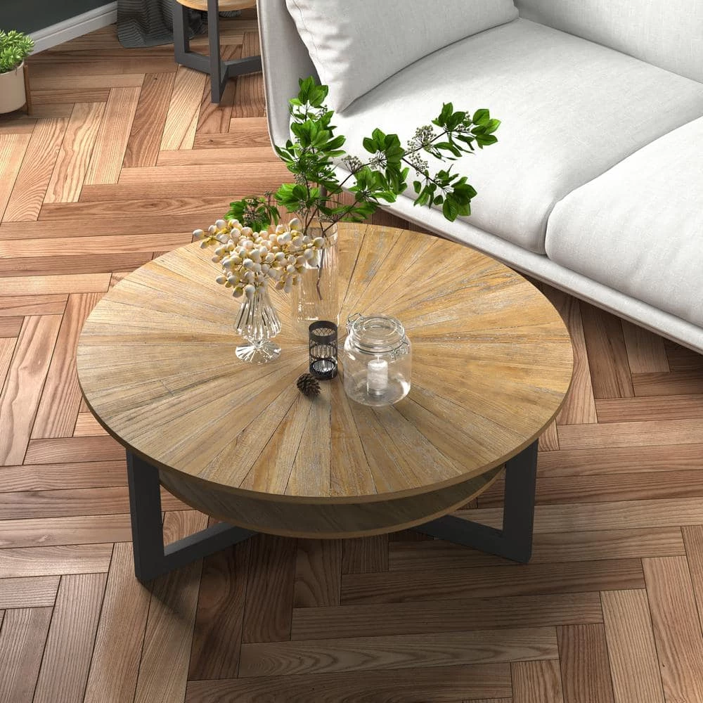 - The perfect complement of any leisure space — This round cocktail table flaunts a farmhouse design with wood grain, which creates a warm space that is both simple and attractive.