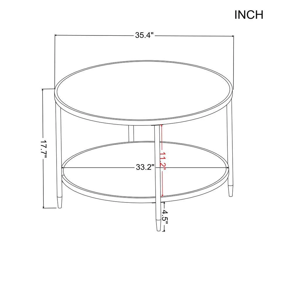 - 35.4″Â Round Coffee Table. Provides with a stable storage surface to display decorations, magazines, or more.