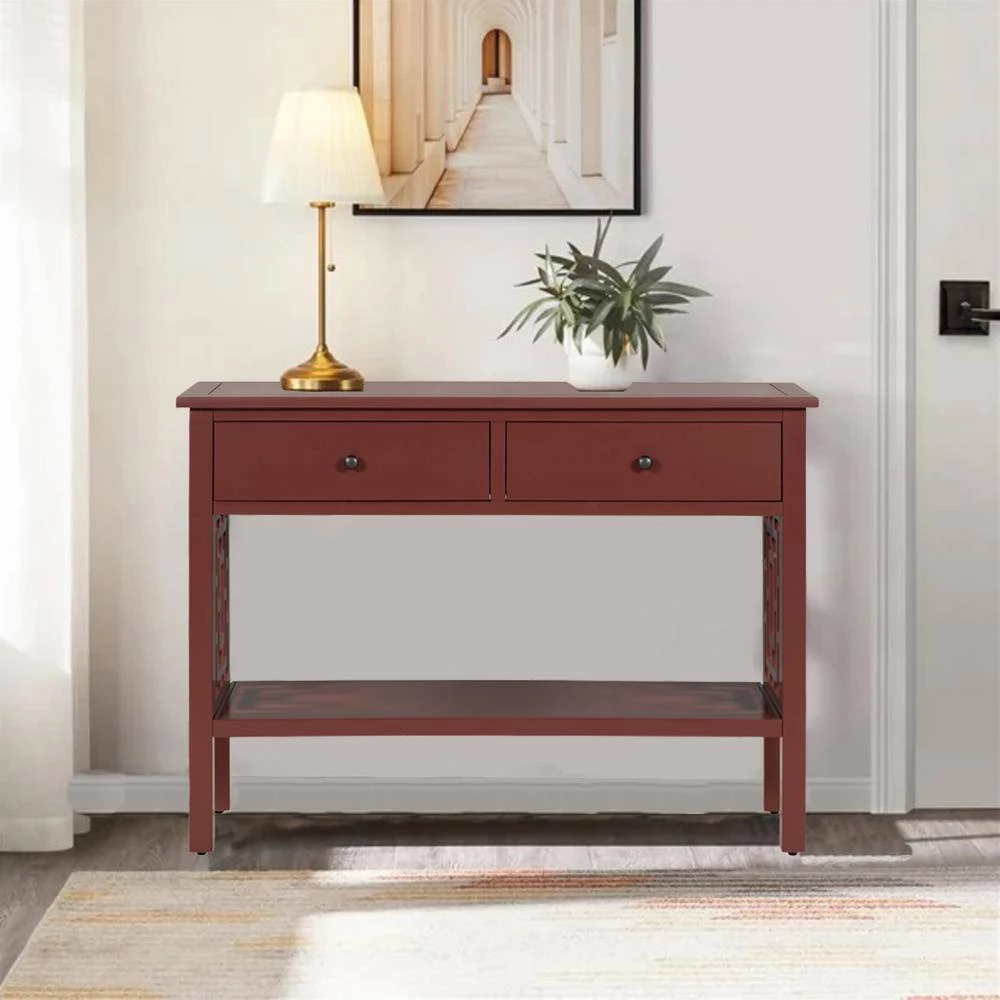 - Meet Your Various Storage Needs: Our console table is functionally designed, meet diversifying storage demands. There are two drawers at the top to provide sufficient storage space for your files, daily necessities, sundries and keep organized, one shelf under the drawer, which can support dictionaries, books, or pot culture, etc. Top board can place your favorite photos, vase, decorations, lamps or other knickknacks.