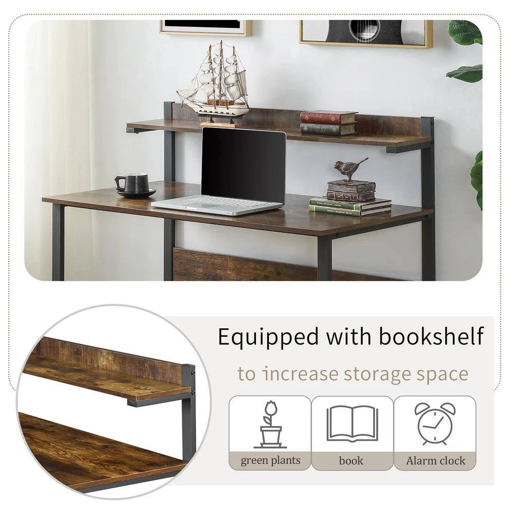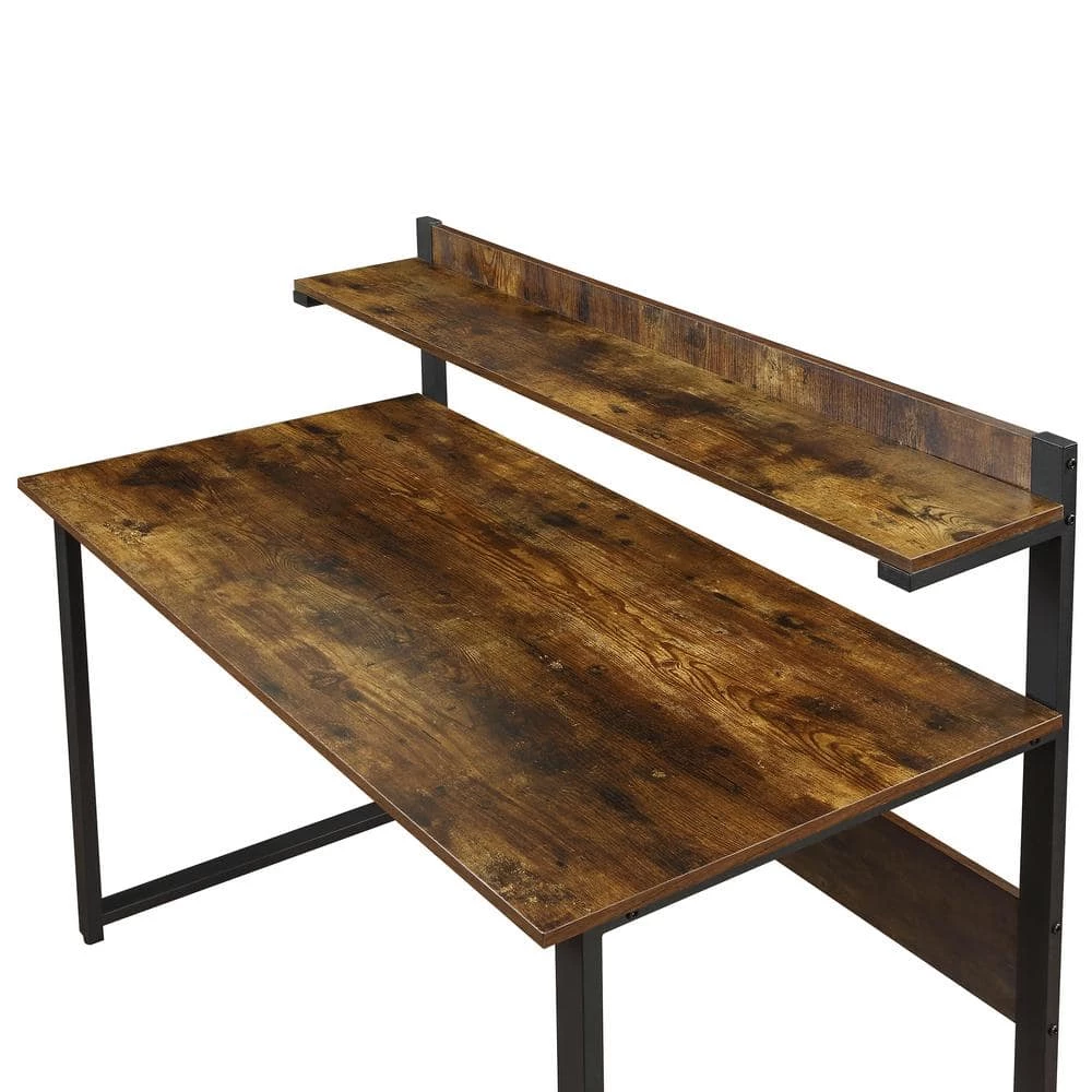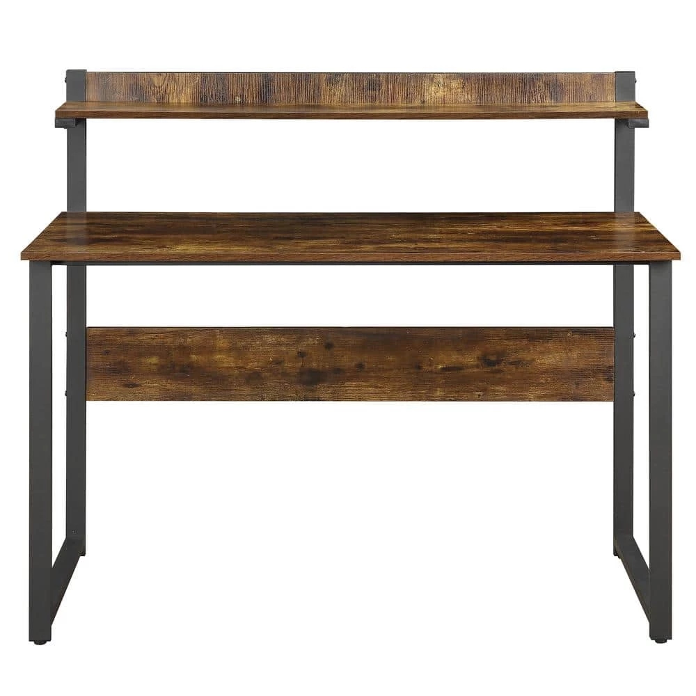 - Featuring a vintage wood grain with black frame, this home office desk effortlessly blends with any furnishings from refined industrial to rustic retro style.