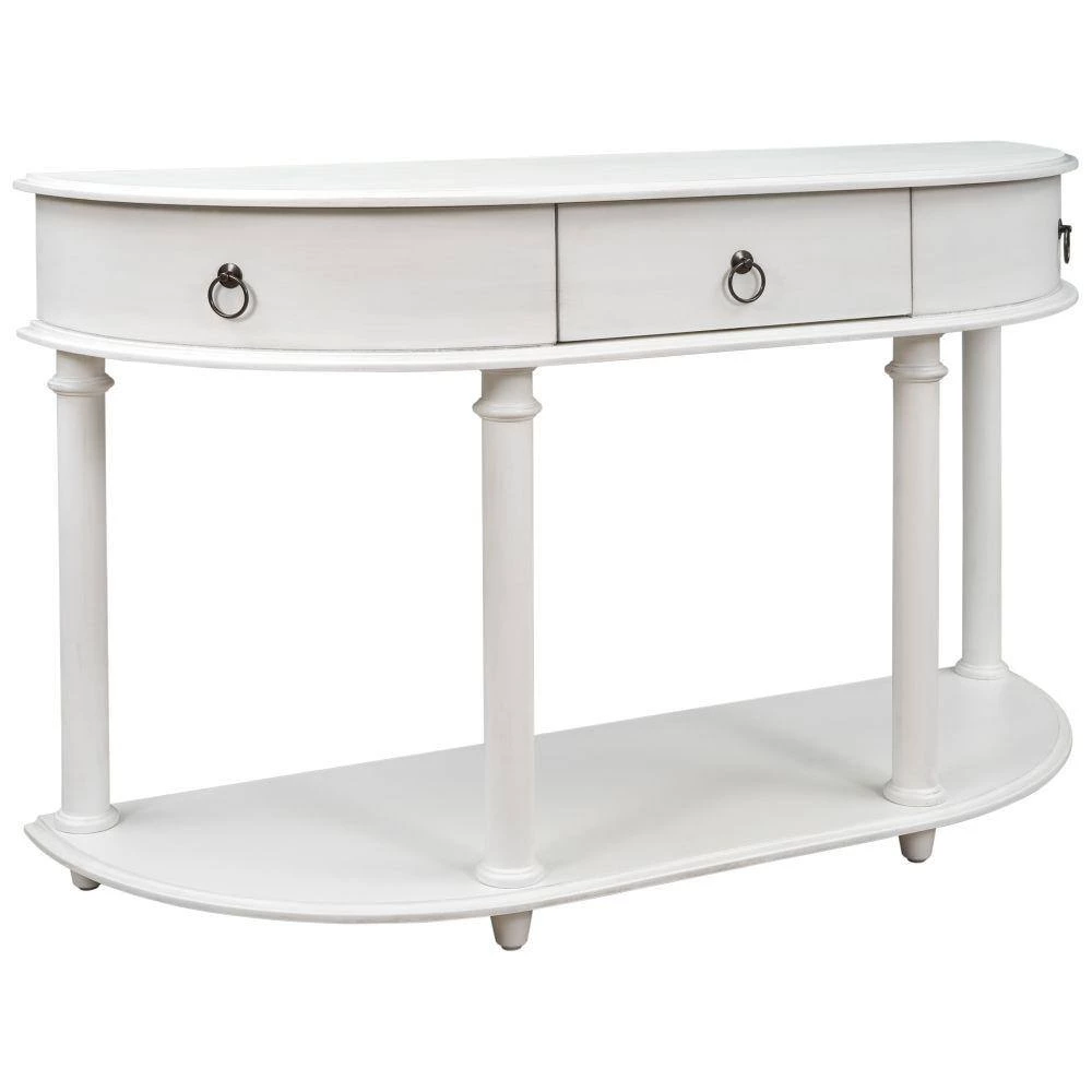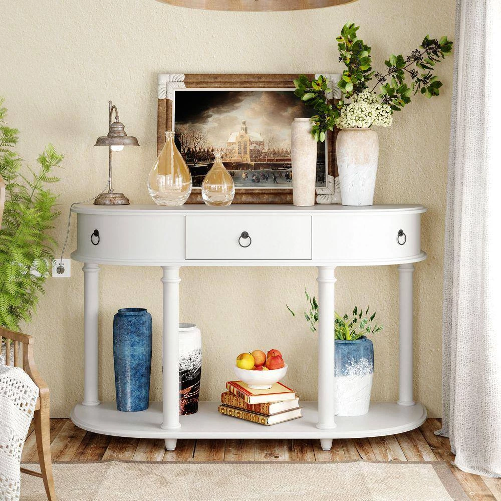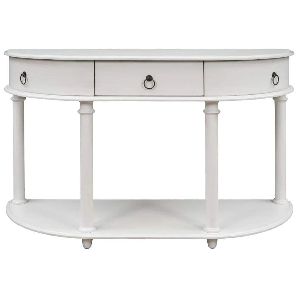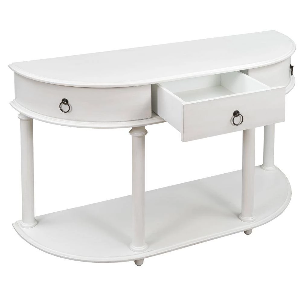 The circular desktop design is unique and beautiful. Besides, this design can be closer to the wall and save space. Different from the traditional 4-desktop corners, it is safer to use and avoid hitting the corner of the table. At the same time, the anti-slip glue of the 4-table feet can effectively protect the floor and avoid scratching. Believe this console table can bring you a wonderful experience. The curved half-moon table is unique in shape and full of design sense, showing classic elegance in the most fashionable way. The surface is glossy spray paint, which looks smooth and flat. You can put it in your entryway, office or living room.