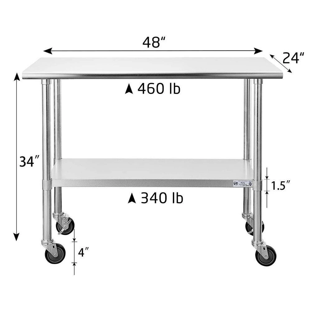 - The solid inner triangle design makes our stainless steel prep table very durable and heavy-duty.