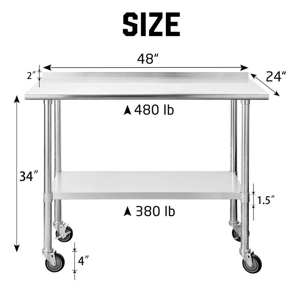 - The solid inner triangle design makes our stainless steel prep table very durable and heavy-duty.