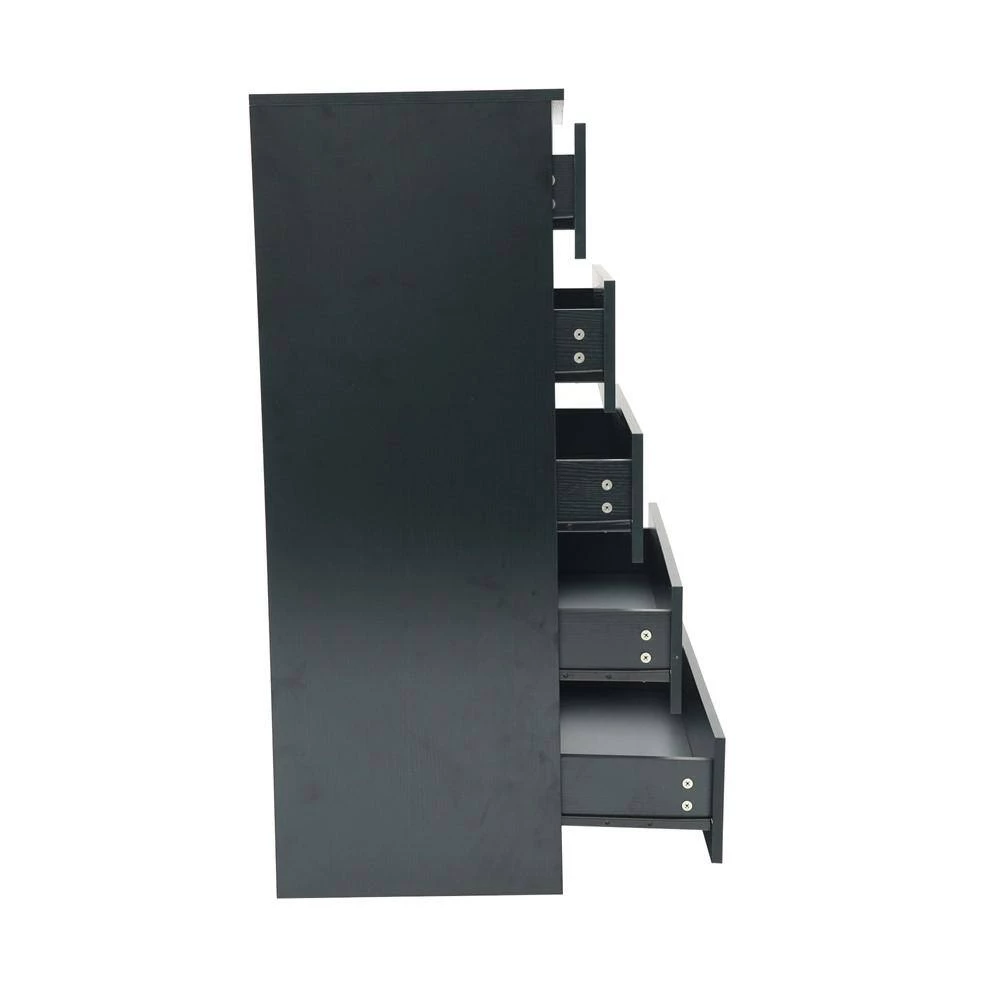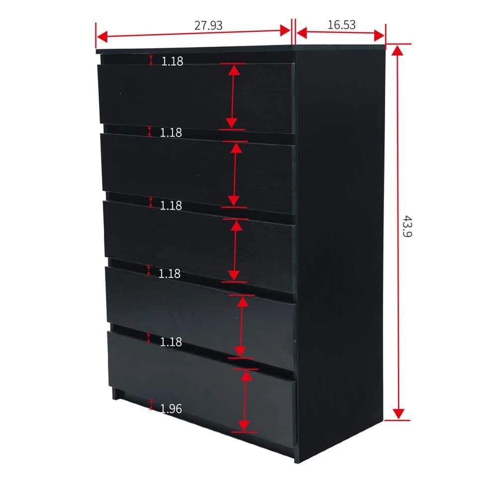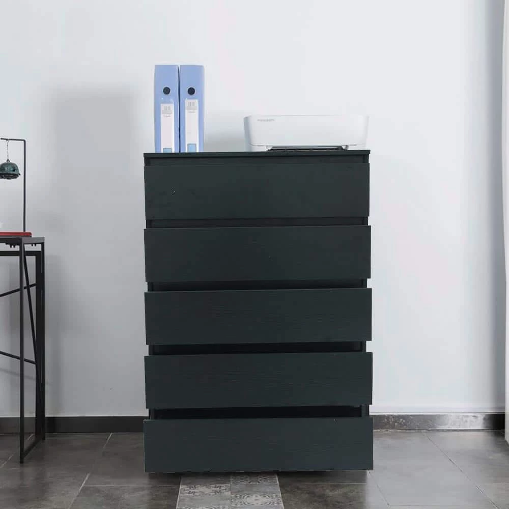 This is a modern design style chest of drawers that provides a modern and cohesive ambience. It has plenty of storage space, 5 roomy drawers to store delicates to bulky clothing items. It is made of high-quality MDF board, sturdy and durable enough to provide long-term service.