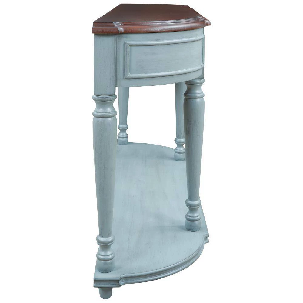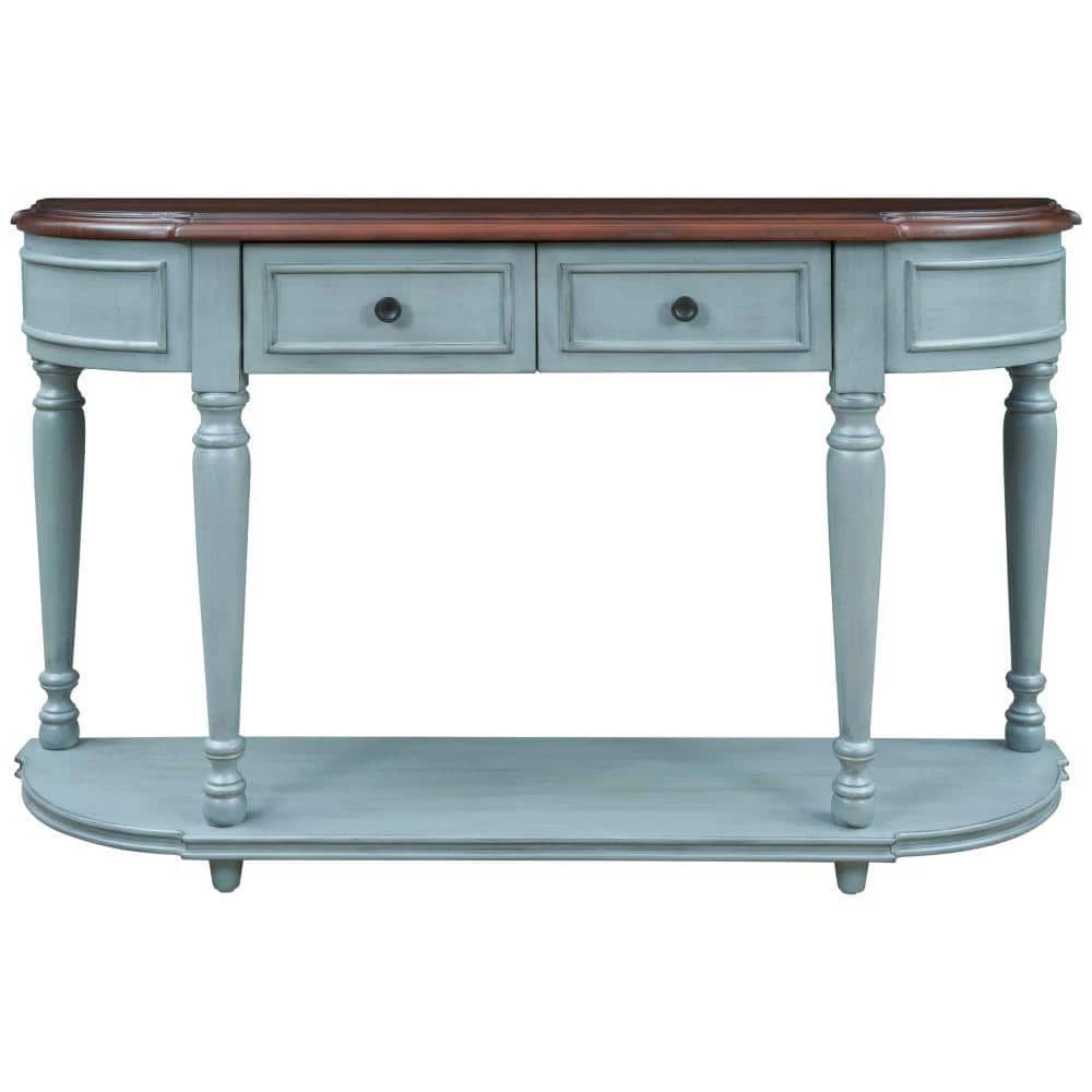 This elegant console table not only has classical looking, but also would be a stable and durable furniture in your usage. The frame of this console table is made of pine wood and the legs of it is made of acacia wood, with MDF boards as auxiliary material, this console table would be a long-term usage furniture with beautiful appearance. These conical table legs can offer sufficient load-bearing capacity to meet your daily needs for storage and decorations. This exquisite and compact console table offer large space to accommodate the daily necessities and decorations, though it would have made a fine ornament in itself. Tabletop, 2-top drawers and open style shelf can support delicate vase, lamp, storage basket, sundries, and etc. This retro design console table would be a useful furniture in your house. The load-bearing capacity of tabletop and bottom plate are 133 lbs. and 56 lbs. respectively. The amount of the same parameter of each top drawer is 11 lbs.