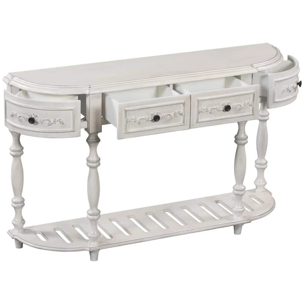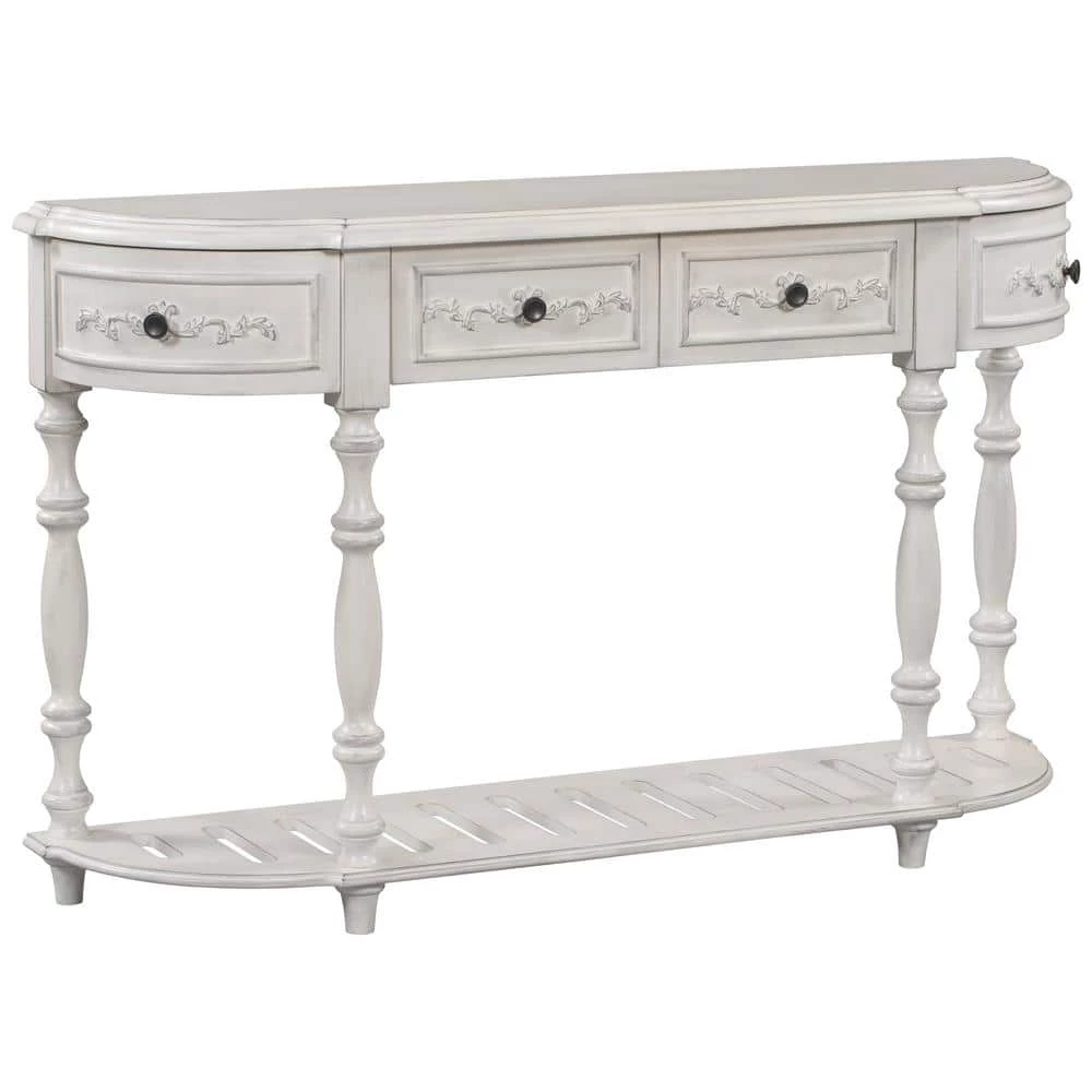 - Spacious Storage Space: This classic style console table has four drawers and one shelf to offer enormous storage to support debris basket, pot culture, books, etc. Top board can place your beautiful vase, cute photos and decorations, additional knickknacks or a lamp.