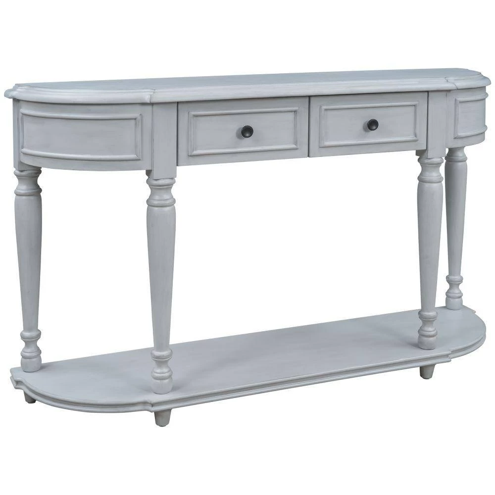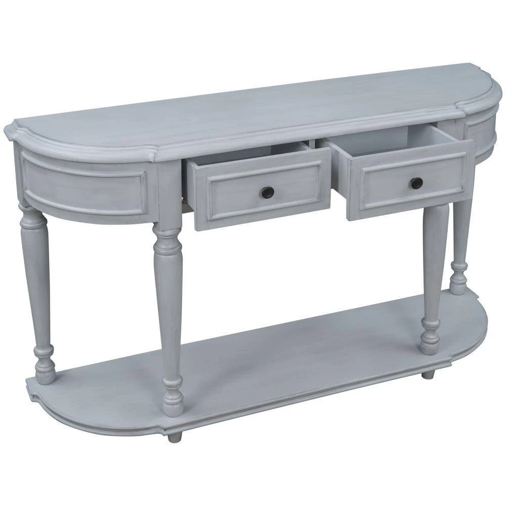 52 in. Gray Wash Standard Half Moon Wood Console Table with 2-Top Drawers by Kahomvis - Image 2