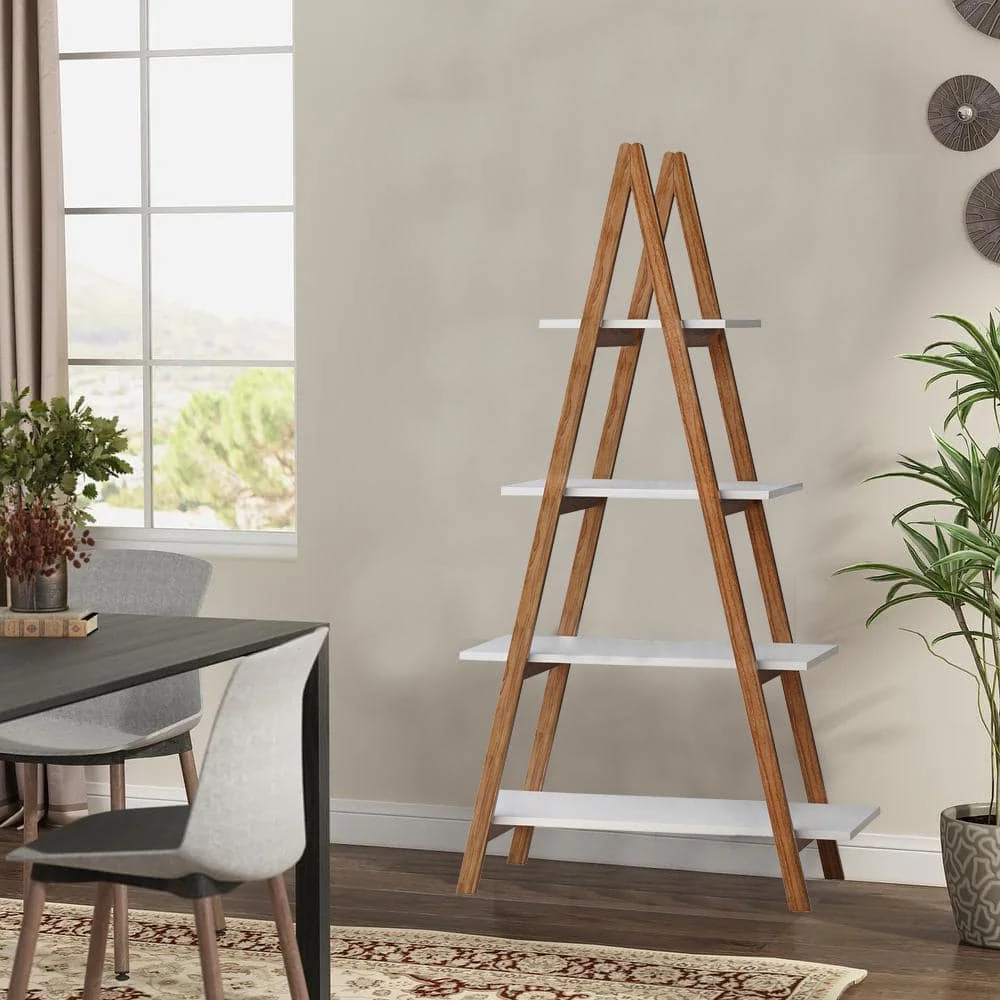 Stylish, elegant, simple and versatile design use of various home decoration, features “A” shape construction and ladder-like shelves. This 4-tire bookcase is crafted from solid bamboo wood and high-grade E1 MDF board with UV painted, which can prevent some types of scratches, such as keys.It’s reliable, stable and scratch- resistant.Each shelf can supports 22 lbs. 4 open tires and different size of each tires provides spacious space for your often use things.This ladder rack can be used as plant stand, bookcase, display shelf for your family photos.