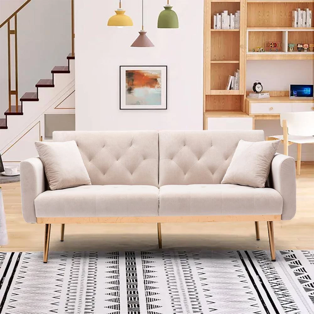 63.77 in. Beige Velvet Fabric Upholstered 2-Seater Modern Loveseat with Rose Gold Metal Feet and Pillows by Kahomvis -Kahomvis Sales Store beige kahomvis loveseats cm lkw3 6035 31 1000