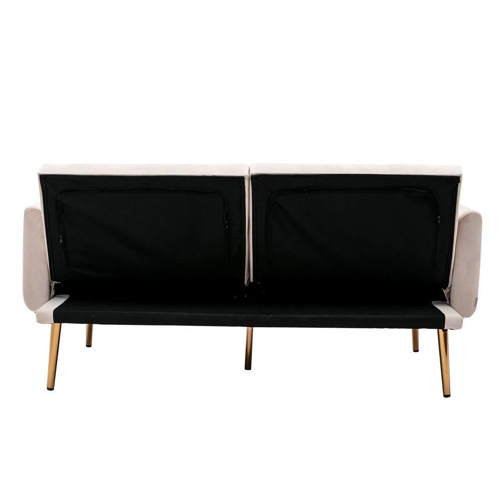 63.77 in. Beige Velvet Fabric Upholstered 2-Seater Modern Loveseat with Rose Gold Metal Feet and Pillows by Kahomvis - Image 7