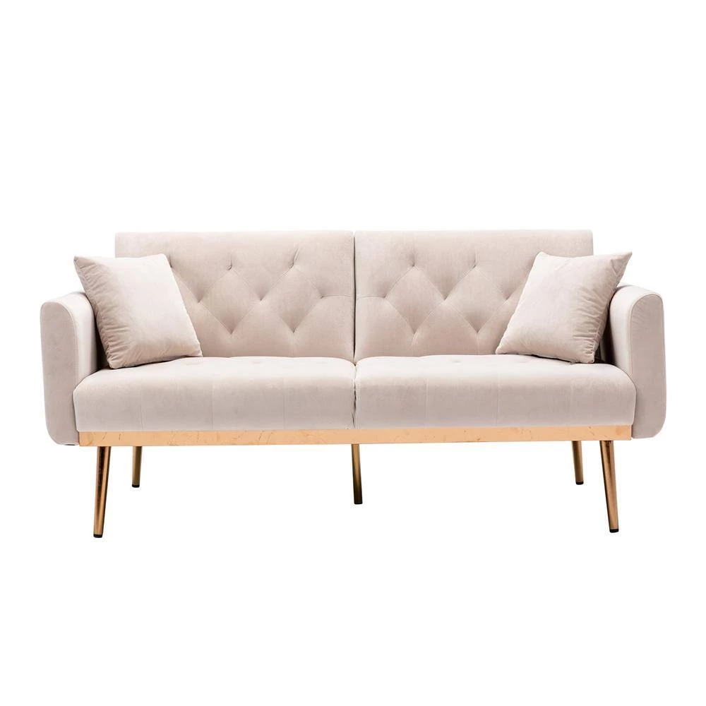 63.77 in. Beige Velvet Fabric Upholstered 2-Seater Modern Loveseat with Rose Gold Metal Feet and Pillows by Kahomvis -Kahomvis Sales Store beige kahomvis loveseats cm lkw3 6035 e1 1000