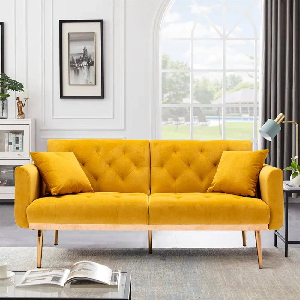 - This sofa wonderfully complements any decor with elegantly tufted cushions, polished legs, and a low-slung seat