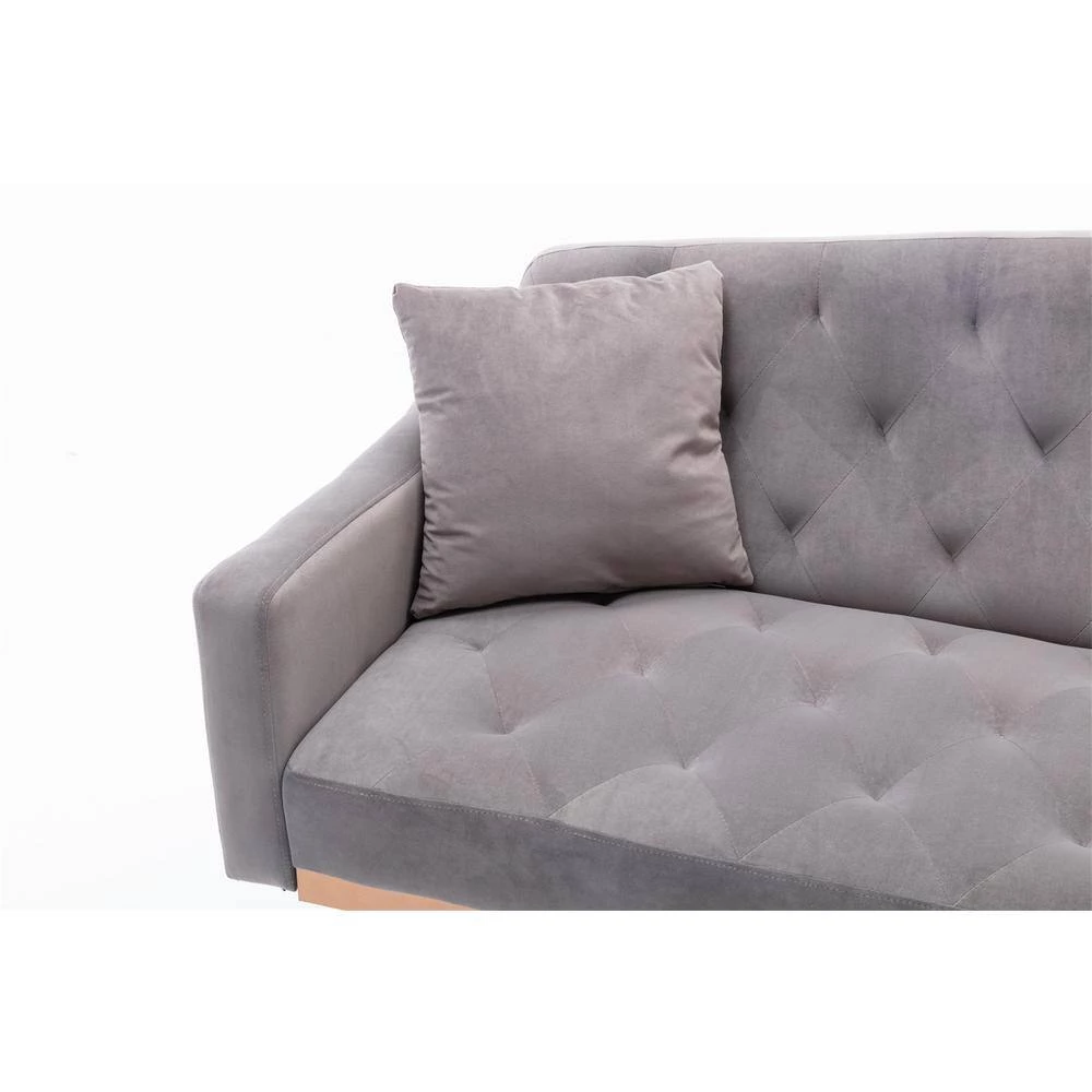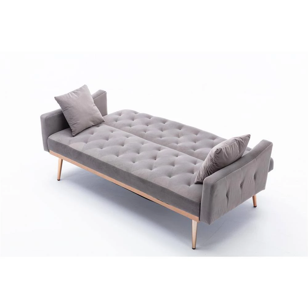 65.3 in. Gray Velvet Fabric Upholstered 2-Seater Loveseat with Metal Feet and Pillows, Tufted Adjustable Back Sofa Bed by Kahomvis - Image 9