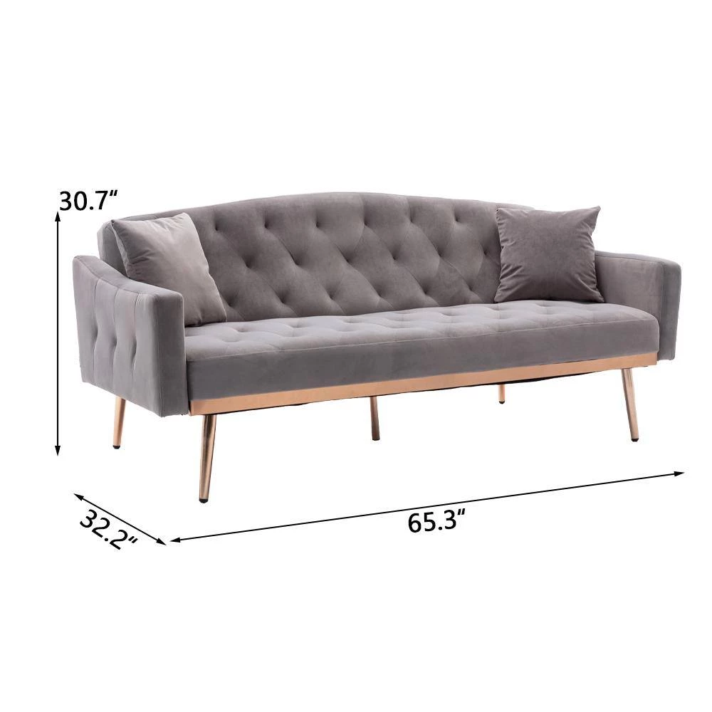 65.3 in. Gray Velvet Fabric Upholstered 2-Seater Loveseat with Metal Feet and Pillows, Tufted Adjustable Back Sofa Bed by Kahomvis