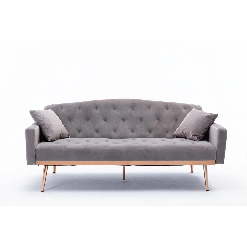 65.3 in. Gray Velvet Fabric Upholstered 2-Seater Loveseat with Metal Feet and Pillows, Tufted Adjustable Back Sofa Bed by Kahomvis - Image 2