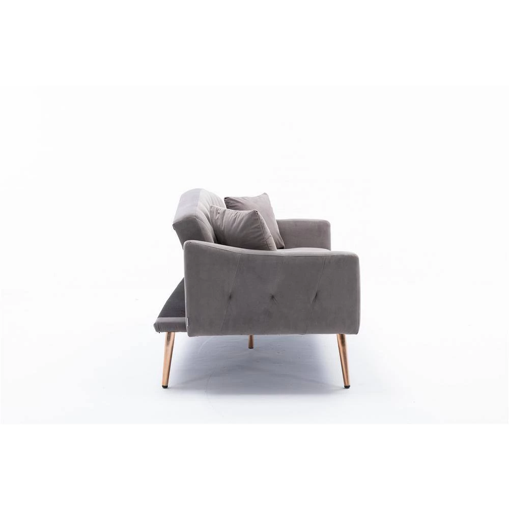 65.3 in. Gray Velvet Fabric Upholstered 2-Seater Loveseat with Metal Feet and Pillows, Tufted Adjustable Back Sofa Bed by Kahomvis - Image 7