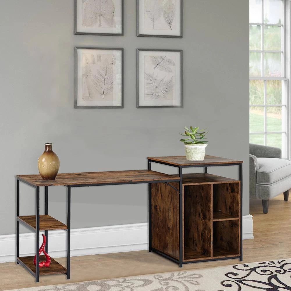 This desk has a large 47-inch computer desk and 23-inch cabinet storage space.This desk creates a perfect double workstation for home office. The printer shelf design provide enough space to lay your printer, scanner, tower or files, while leaving plenty room for working area. Besides,the cabinet without the back panel, you can palce the cabinet left or right.