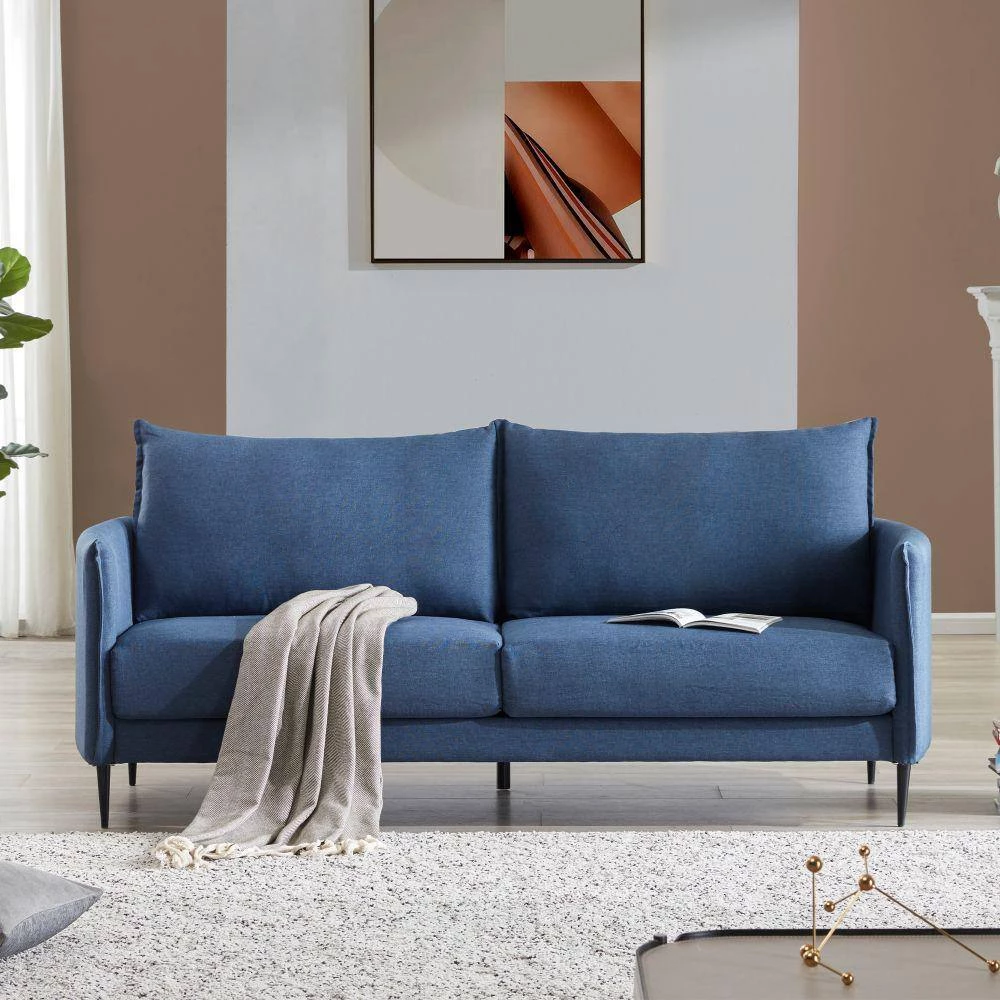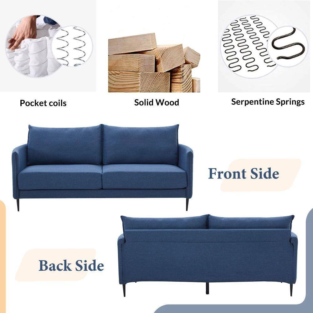 Simple lines combine tall tapered legs and arc-shaped armrest. With clean lines and no extra decoration, the sofa is very suitable for decorating your room.This loveseat is made with solid hardwood frame. The maximum load 300lbs/seat. it can fully support the weight of two people, while the hard frame and legs make it stabler and safer.Seat cushions filled with high resilience foam provide comfortable support for your body when seated, and easily regain their shape when you rise. Sitting in a soft sofa makes your body completely relax.Don’t lost style in your small rooms or compact spaces! This small couch adds mid-century charm to your small apartment, dorm, living rooms or loft while its streamlined silhouette arms fuse together to make a modern look.