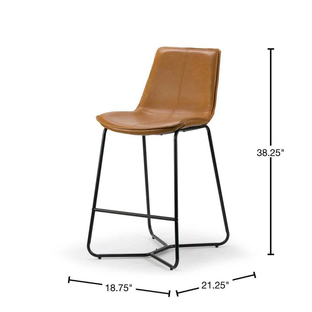 Modern, bold and style are the statements of this counter height stool. Upholstered seating with rustic effect makes this stool unique, while iron frame adds stability and durability. Simple modern design and neutral color scheme help this stool to match your other home decor pieces with ease and style. Floor protectors attached to the bottom of the frame can be adjusted for even standing. Assembly needed. This stool can be cleaned with a dry cloth. Matching dining chair and bar stool are also available (sold separately). Features, adjustable floor protectors for even base black metal frame rustic effect upholstery assembly required product dimensions, 18.75 in. W x 21.25 in. D x 38.25 in. H weight, 11.9 lbs. seat, 18.75 in. W x 15 in. D x 25.75 in. H, seat cushion, 2 in. thick, back, 16 in. W x 6.5 in. D x 13 in. H, back cushion, 2 in. thick, legs, 25 in. H, footrest, 10 in. H from floor.
