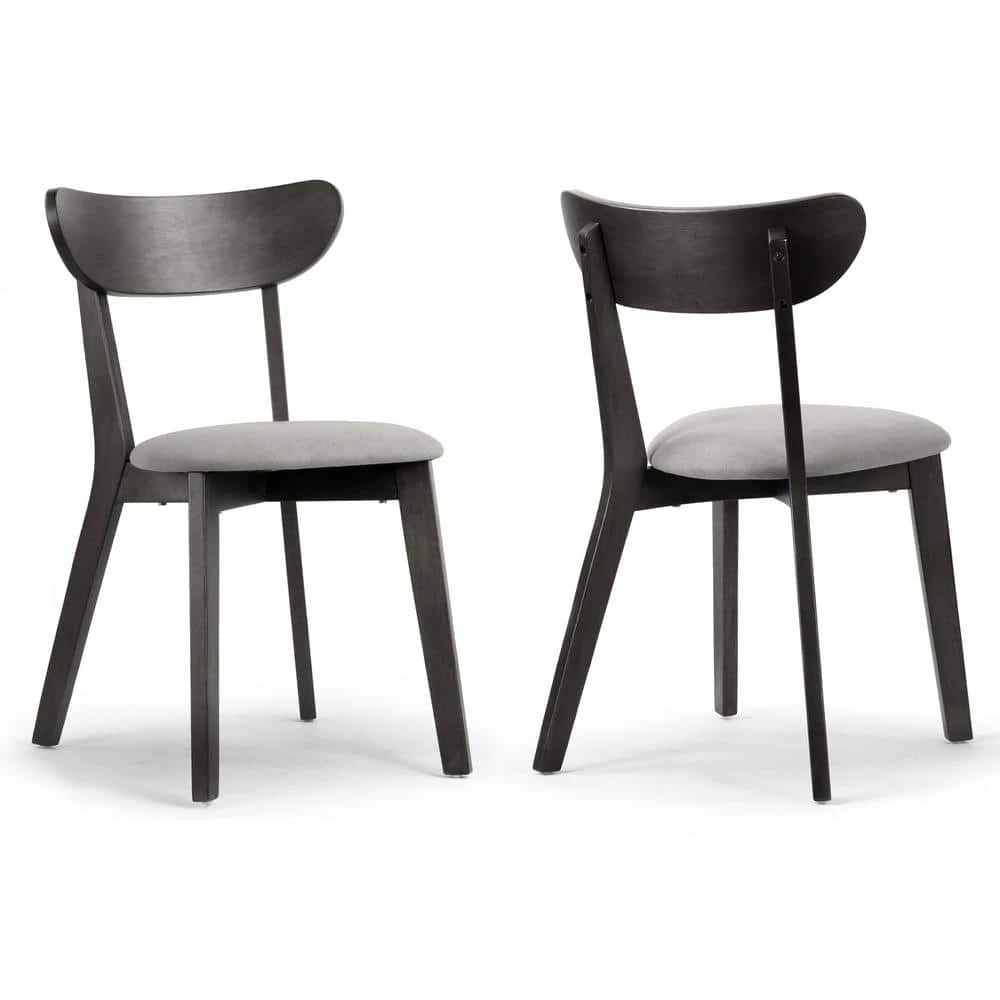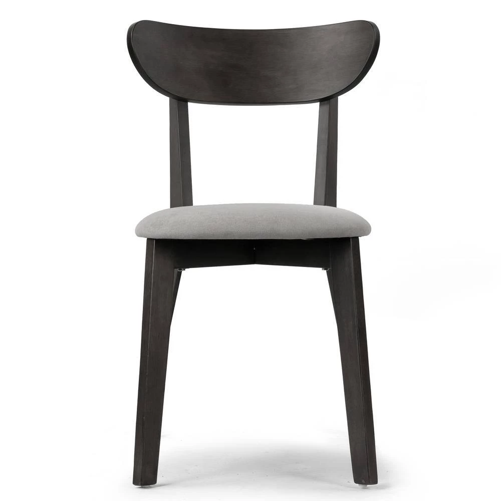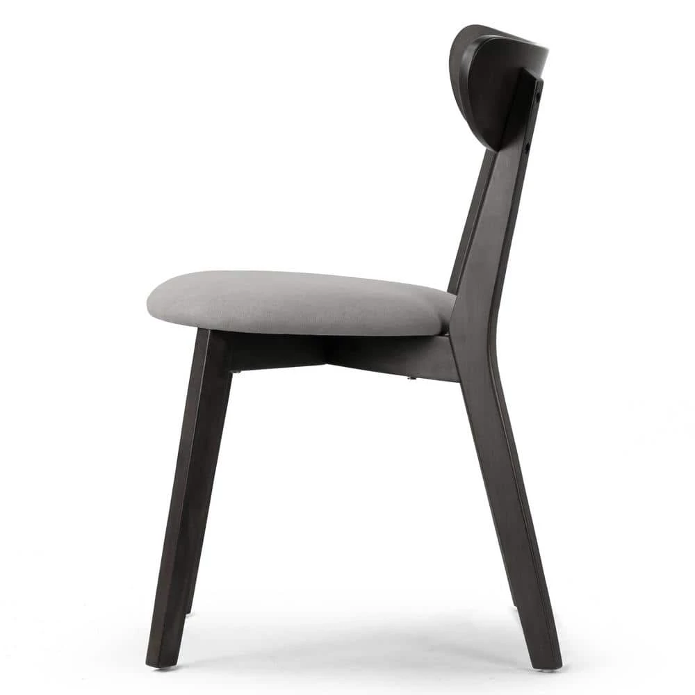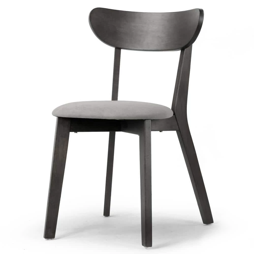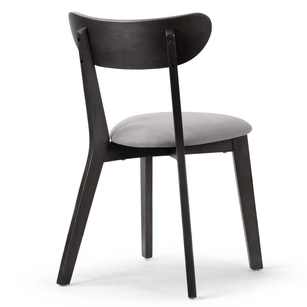 Classic wood dining chair design with a modern twist. This dining chair has fabric upholstered seat and is cushioned with medium density foam for better comfort of even long-time sitting. Chair frame and legs are made of solid rubberwood, which offers sturdiness and durability. Assembly needed. Spot clean recommended. Features: Wood dining chair Light grey fabric upholstered chair seat Black rubberwood legs Black rubberwood frame Assembly needed Spot clean recommended Assembly required Product Dimensions:18.5 in. W x 21.26 in. D x 31.5 in. H Weight: 10.56 Lbs. Seat: 16.14 in. W x 18.31 in. D x 18.9 in. H, Seat cushion: 2.17 in. thick, Back: 18.5 in. W x 2.95 in. D x 12.6 in. H, Leg height: 16.73 in.