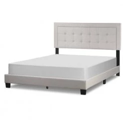 A classic modern design with carefully crafted details. Unique silver grey velvety fabric upholstery will surely make this bed the center piece of your bedroom. Bed frame made of rubber wood offers quality and stability, while decorative stitching on the headboard adds feature of style. This bed ships fast and all parts come in one box. This bed frame comes with center support legs, and a box spring is required for use. Assembly required. Spot clean recommended.