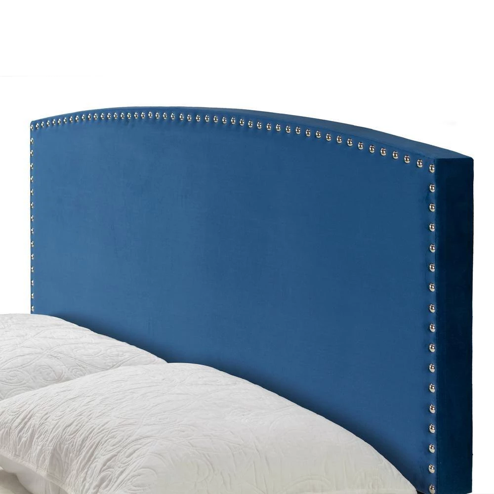 This bed frame is a classic design with updated modern details. Unique navy blue velvety fabric upholstery will surely make this bed the center piece of your bedroom. The bed frame and inside support pieces are made of rubber wood. It is a simple bed yet the nail head trim on the headboard adds characteristics. This bed ships fast and all parts come in one box. You will need a box spring for better support of your mattress. Assembly required. Spot clean recommended.