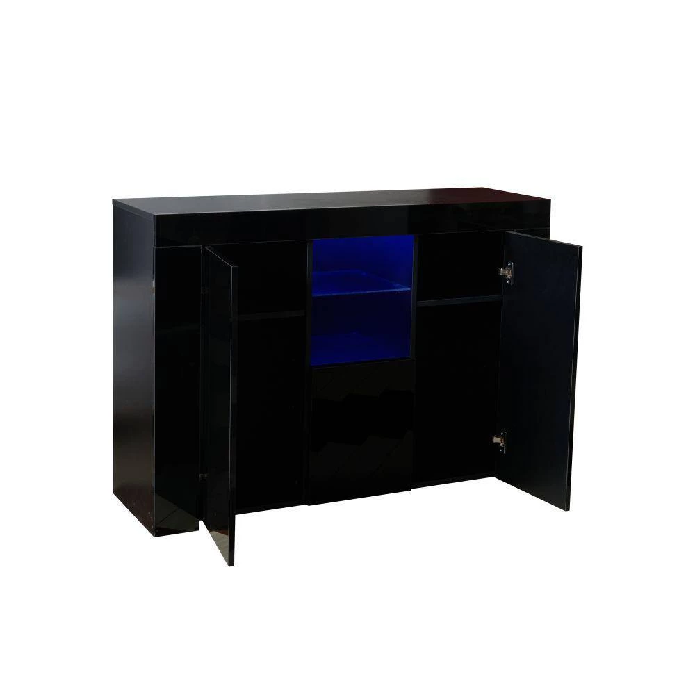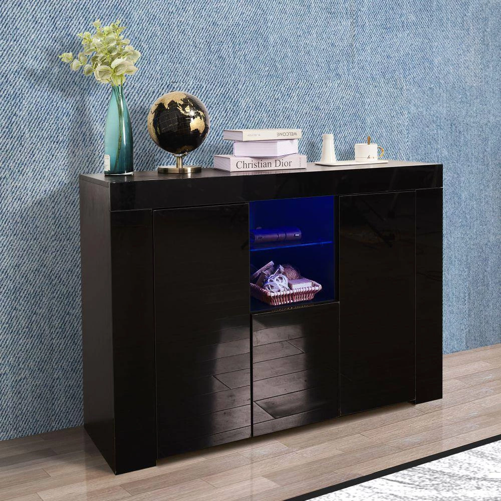 This utility 2 doors sideboard-storage-cabinet with open 2-Tiers cubby space,-drawer and-concealed-shelves designed to store household unit, space utilization and prevent dust.Multipurpose LED Kitchen-cupboard-storage Buffet: the sideboard with multi-colour LED lights, which has 16-colors and 4 lighting effects such as strobe and fade, can change the-color of the display through the remote control. Modern Wood High Gloss Sideboard: this wooden sideboard is made of 16mm E1 particleboard, the LED unit-cupboard-cabinet is high gloss effect finish to the front of the unit (including doors and front panels); the rest of the body in a matt finish, contemporary and stylish. Multifunctional Sideboard-storage-cabinet for Home: this utility LED unit-storage-cabinet is best choice for living room, bedroom, hallway, small dinette, also could be used as tv stand table, office tea room-cabinet.