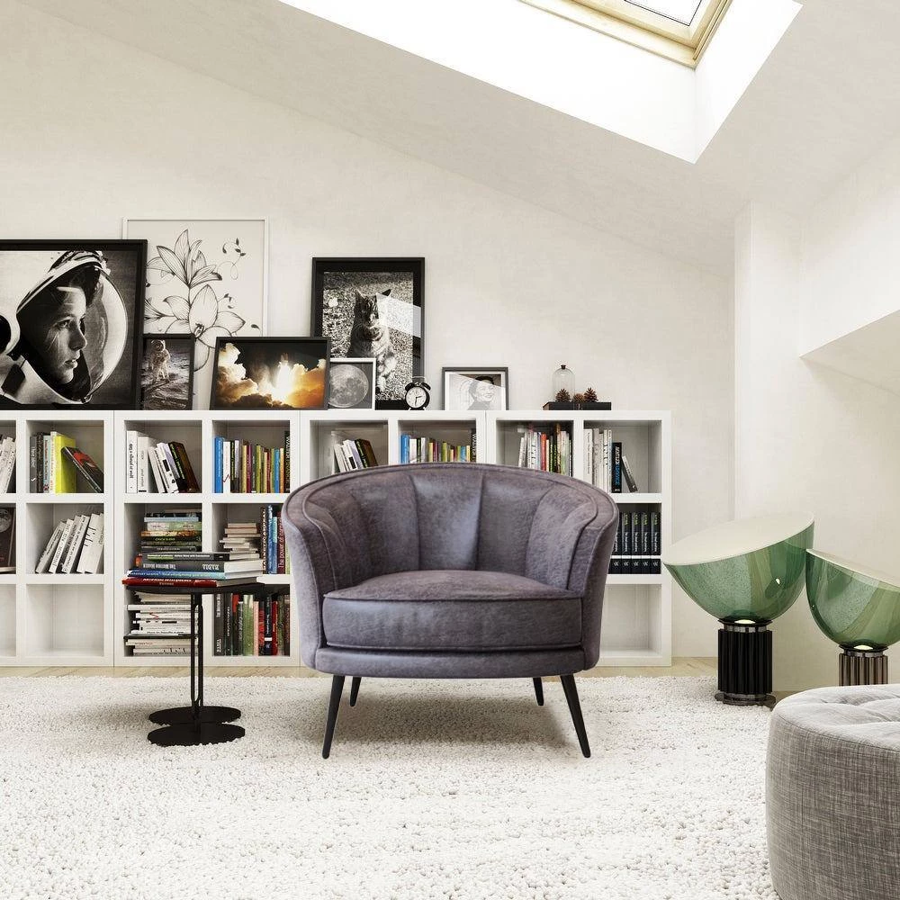 The barrel chair features a seashell-inspired back and black metal legs for some contemporary glam style in your living room or den. It has a solid and engineered wood frame, resting on four metal legs for a bit of shining contrast. This chair showcases velvet upholstery to give your space a luxe look, while foam-filled cushioning provides extra support when you’re curled up with a good book or enjoying some late-night TV. Vertical channel tufting and distinctive piping round out this modern piece.