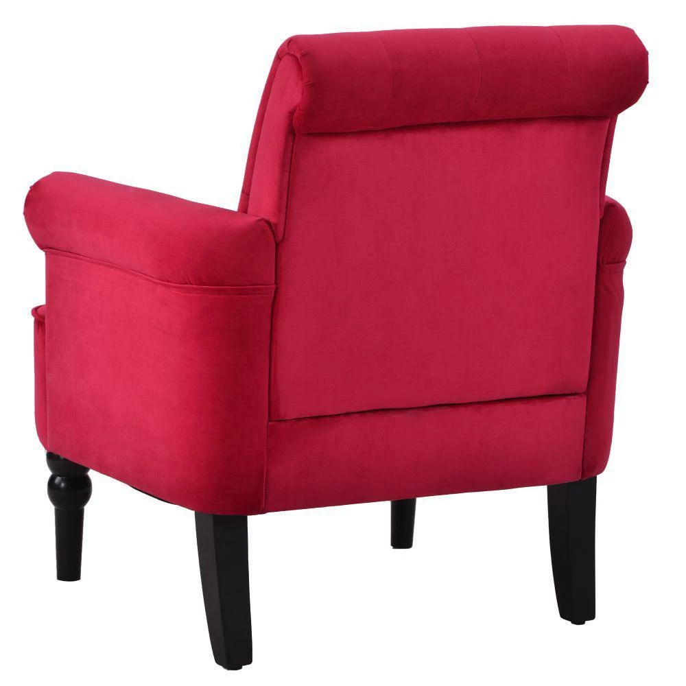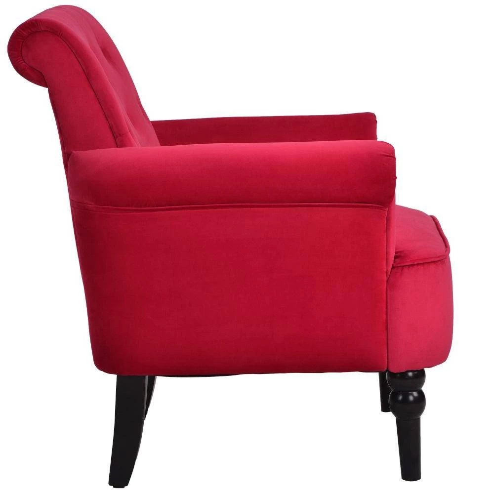 This elegant accent chair updates the classic armchair with dramatic curves and embracing comfort. With lustrous highlights and shadows. The chair features a squared button tufted back design with round arms and leg for added detail. The tight seat cushion has thick foam over a sinuous spring seat deck making this chair extraordinarily comfortable. Cute small accent chairs that can save space. It can fit well in any living room, bedroom or guest room.