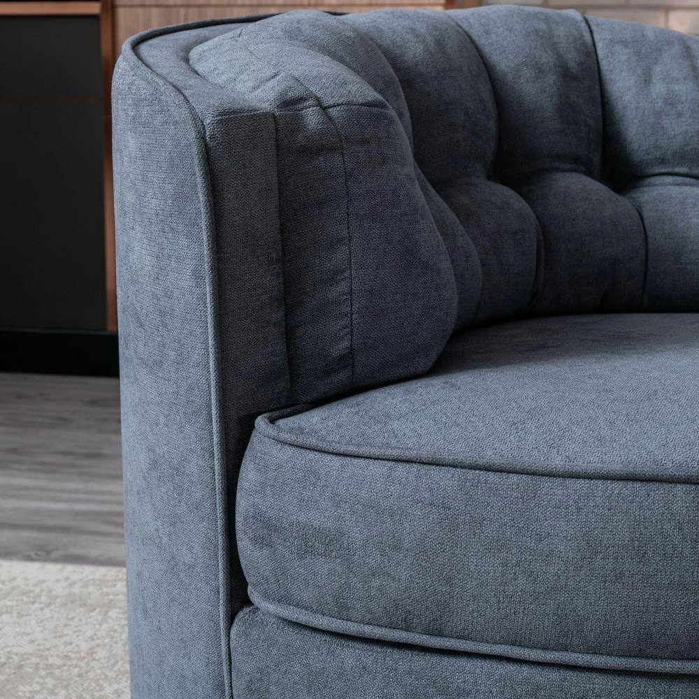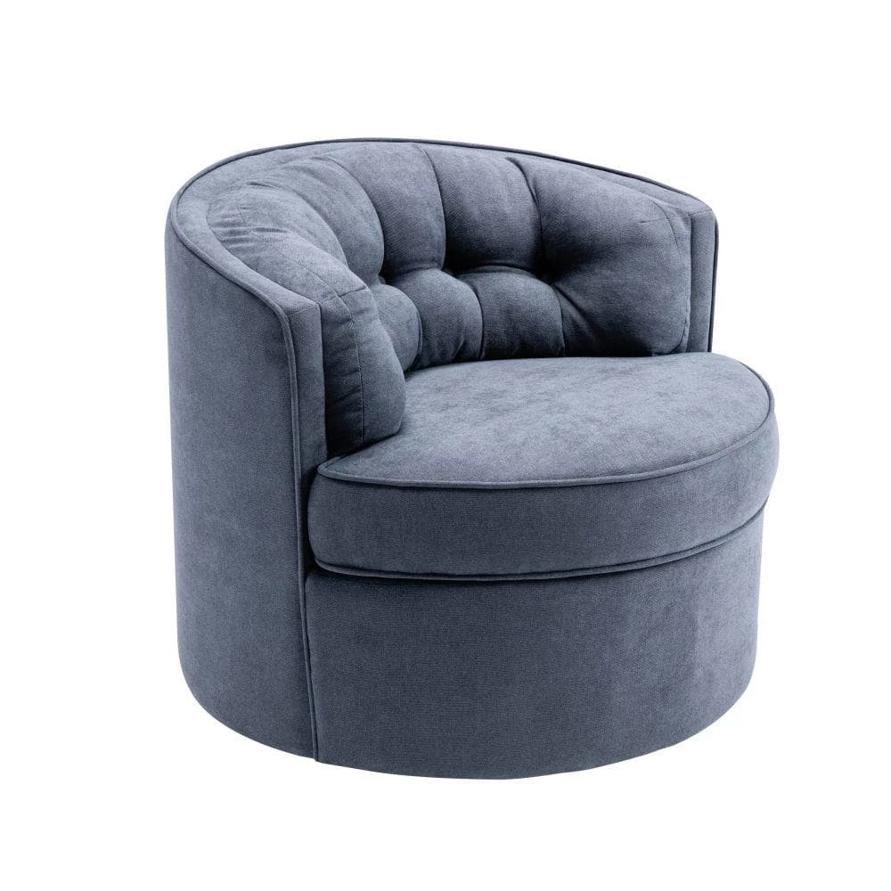 With its curved, padded back and seat, this chair was built for lingering. The 360-degree swivel base allows for easy turning. The inviting silhouette wraps ard you.High-resiliency polyurethane foam that is fiber-wrapped for extra comfort. Kiln-dried pine and engineered wood frame with reinforced joinery.