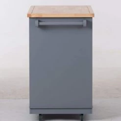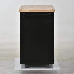 White / Natural Kitchen Cart with Rubber Wood Table Top and Towel Rack by Kahomvis