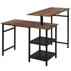 45.3 in. Retangular Industrial Rustic Brown Wood Computer Desk with Storage Shelves by Kahomvis