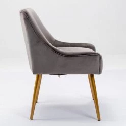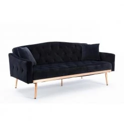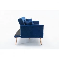 Anna Blue Velvet with Golden Accent Base Medium Size Round Footstool Ottoman by Glamour Home