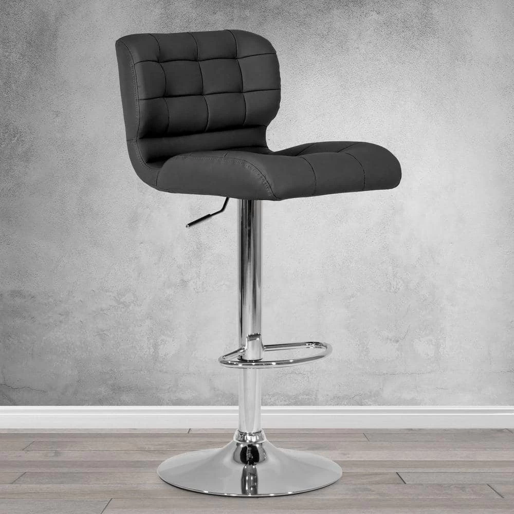 You may be able to end your barstool search here. Looking for barstools with functionality? Adler barstool is height adjustable with a swivel seat. Looking for barstools that are not a torture to sit for a long time? Adler barstools generous cushioning provides comfort. Looking for barstools with style? Classic dimple design is a timeless look. Floor protectors are attached to the bottom of the base. Clean with dry cloth recommended. Assembly needed.