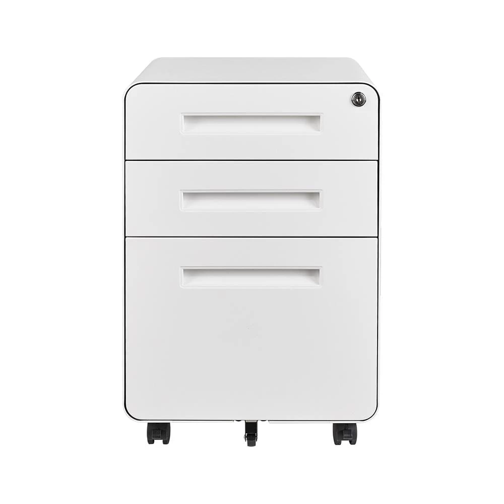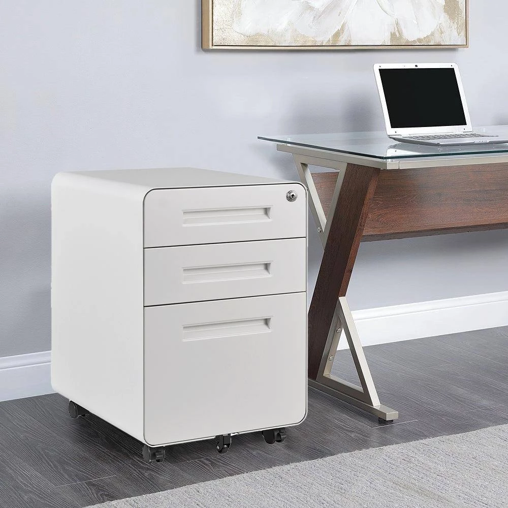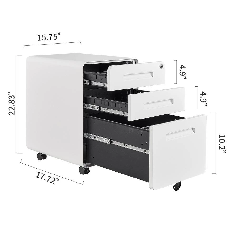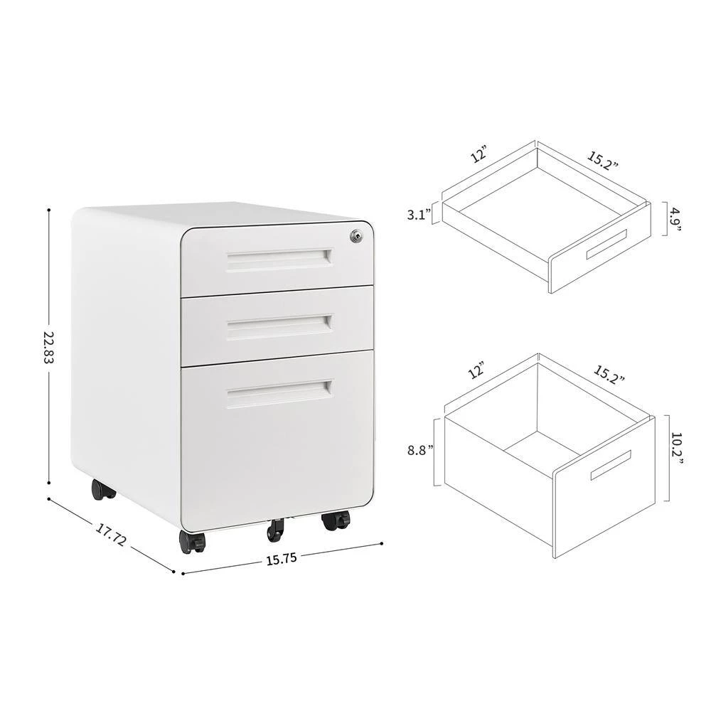 This storage cabinet is designed with new concept. Round corner design elegant appearance. Heavy-duty powder-coated steel construction makes storage cabinets strong and durable. Easy to move and equipped with key lock, safe and reliable. Fits under most desks for your home & office (desk and workstation).