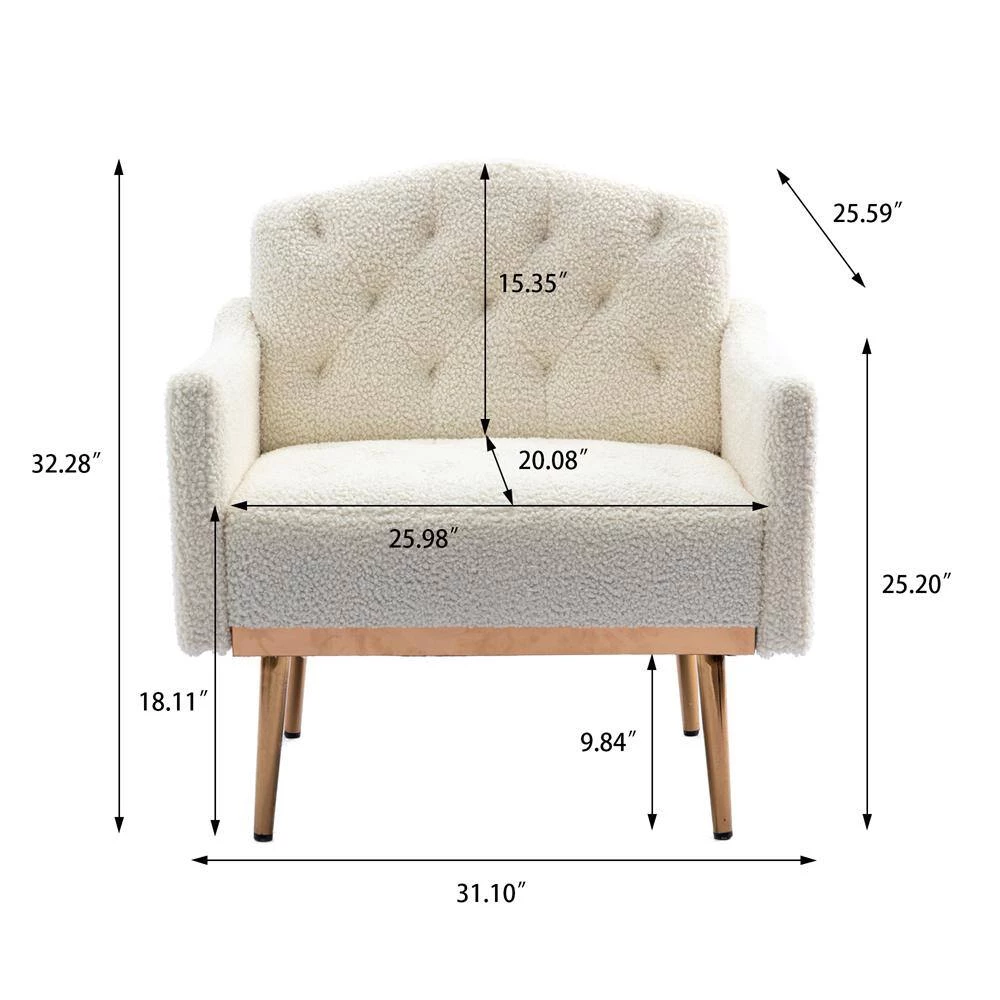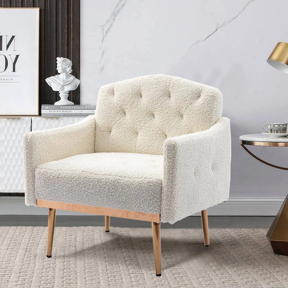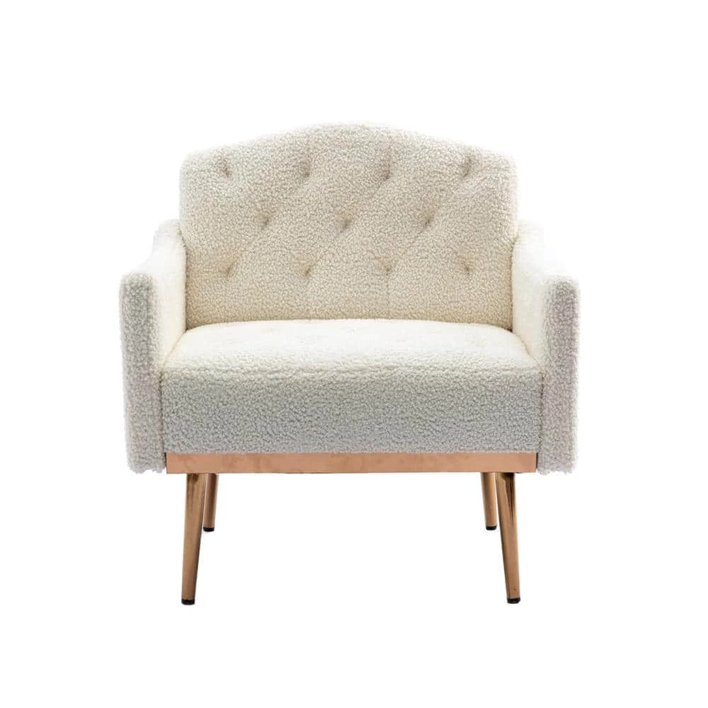 White Teddy Fabric Tufted Back Leisure Single Sofa Arm Chair (Set of 1) by Kahomvis -Kahomvis Sales Store white teddy kahomvis accent chairs cm lkw3 7932 e1 1000